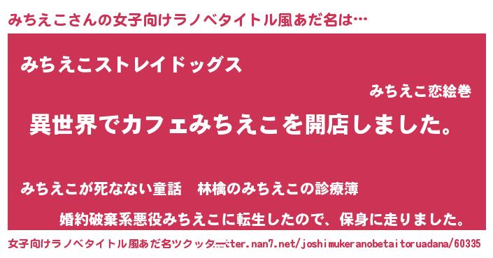| 男性向けラノベタイトル風あだ名 | 『誰もが恐れるあのみちえこが、ぼくの専属メイドになるようです。』 |