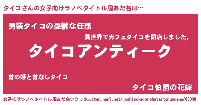 | 男性向けラノベタイトル風あだ名 | 『魔法科高校のタイコ』 |