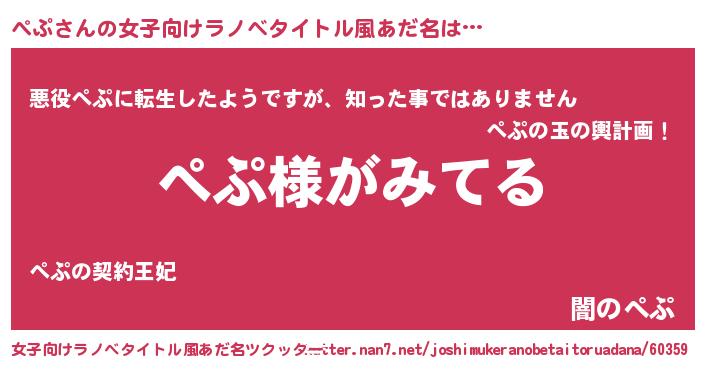 | 男性向けラノベタイトル風あだ名 | 『ぺぷの嫁は女の子じゃないと思った?』 |