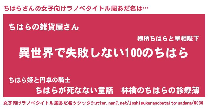 | 男性向けラノベタイトル風あだ名 | 『ちはらという概念が存在しない退屈な世界 』 |