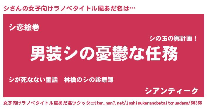 | 男性向けラノベタイトル風あだ名 | 『うちのシが世界を掌握している!』 |