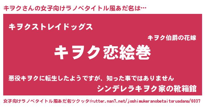 | 男性向けラノベタイトル風あだ名 | 『ノーゲーム・ノーキヲク』 |