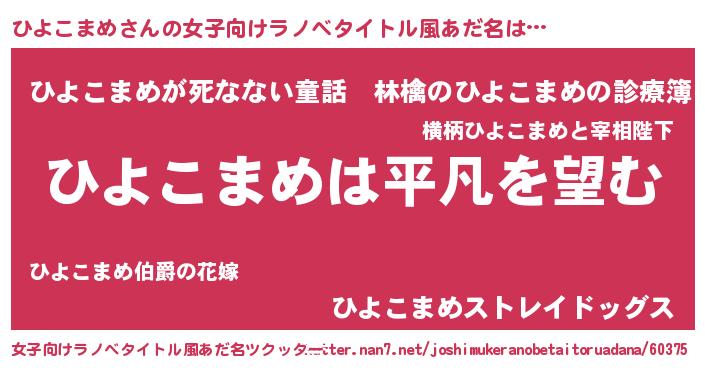 | 男性向けラノベタイトル風あだ名 | 『ダンジョンにひよこまめを求めるのは間違っているだろうか』 |