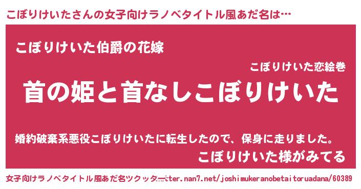 | ファンタジー風あだ名 | 『エターナルコボリケイター』 |
