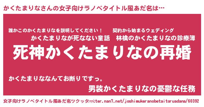 | 男性向けラノベタイトル風あだ名 | 『ノーゲーム・ノーカクタマリナ』 |