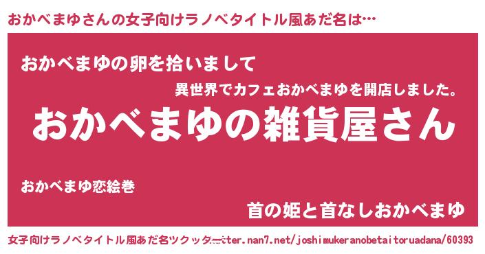 | 男性向けラノベタイトル風あだ名 | 『やはりおかべまゆの青春ラブコメはまちがっている 』 |