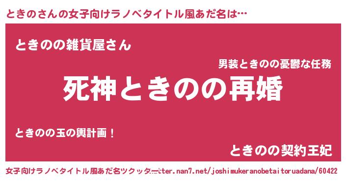 | ヒーロー風カッコイイあだ名 | 『天空の使者ときの』『ネオトキノ』 |