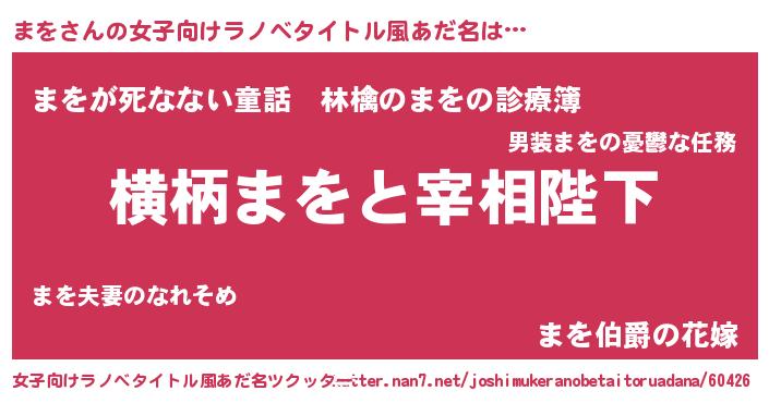 | 男性向けラノベタイトル風あだ名 | 『まをに滅ぼされるだけの簡単なお仕事です』 |