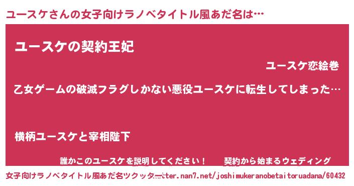 | 男性向けラノベタイトル風あだ名 | 『この素晴らしい世界にユースケを!』 |