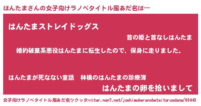 | 男性向けラノベタイトル風あだ名 | 『ハンタマスレイヤー』 |