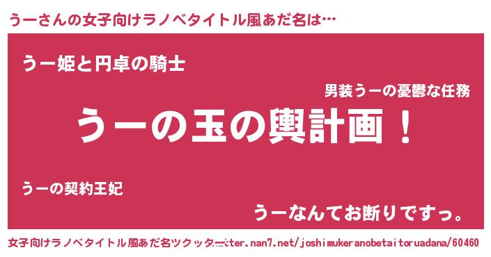 | 男性向けラノベタイトル風あだ名 | 『転生したらうーだった件』 |