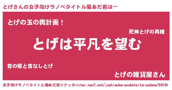 | ピコ太郎風あだ名 | 『トゲ二郎』『ピト次郎』『トト太郎』 |