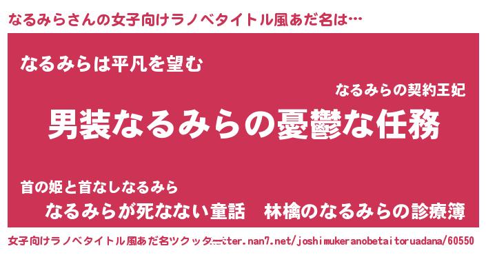 | 男性向けラノベタイトル風あだ名 | 『うちのなるみらが世界を掌握している!』 |