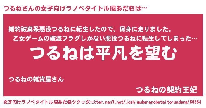 | 胡散臭い通販商品みたいなあだ名 | 『信頼と実績のネックレス…その名も「つるね」』 |