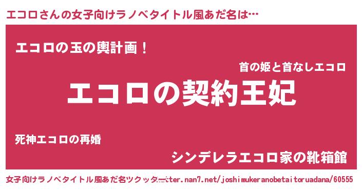 | ヘコむあだ名 | 『エコロ(震え声)』『エコ太郎』 |