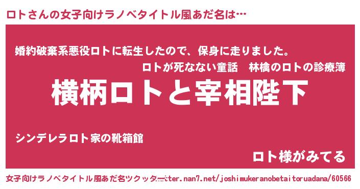 | 男性向けラノベタイトル風あだ名 | 『ロトに滅ぼされるだけの簡単なお仕事です』 |