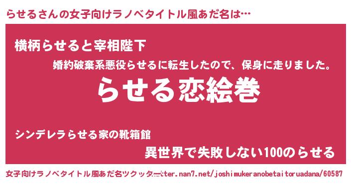 | ヒーロー風カッコイイあだ名 | 『慈愛の使者らせる』『ネオラセル』 |