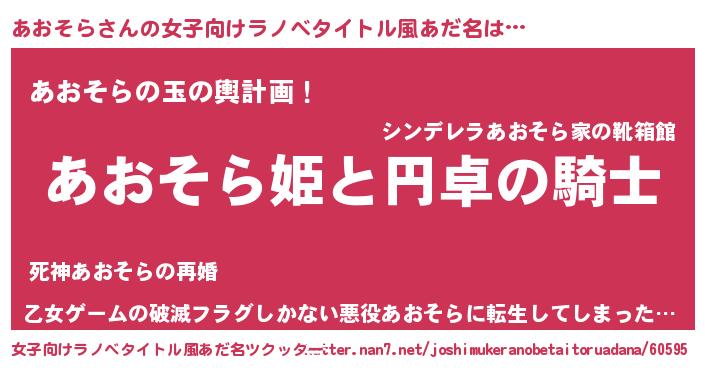 | 男性向けラノベタイトル風あだ名 | 『あおそらの憂鬱』『魔弾の王とあおそら』 |
