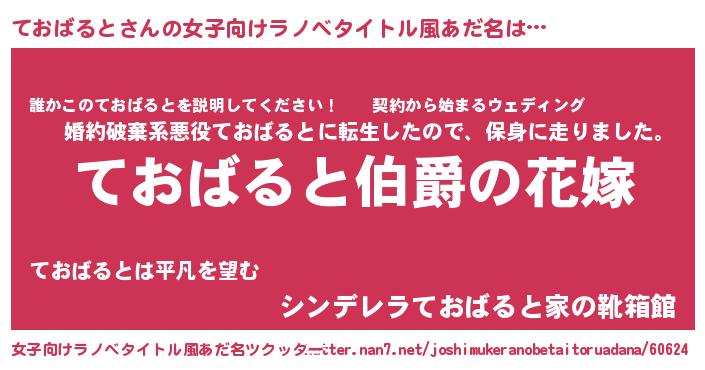 | 男性向けラノベタイトル風あだ名 | 『やはりておばるとの青春ラブコメはまちがっている 』 |