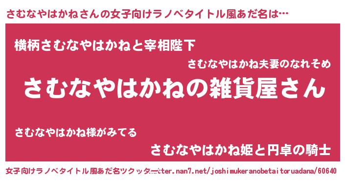 | 意味不明あだ名 | 『さむなやはかねフォーエバー』 |