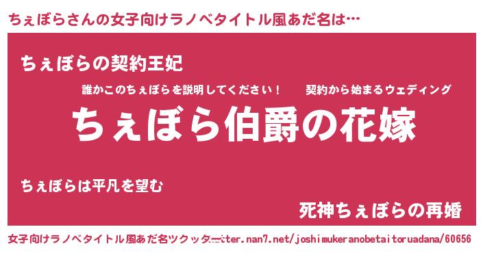 | 男性向けラノベタイトル風あだ名 | 『やはりちぇぼらの青春ラブコメはまちがっている 』 |