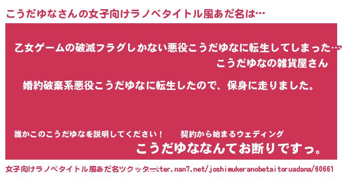 | 男性向けラノベタイトル風あだ名 | 『コウダユナスレイヤー』 |