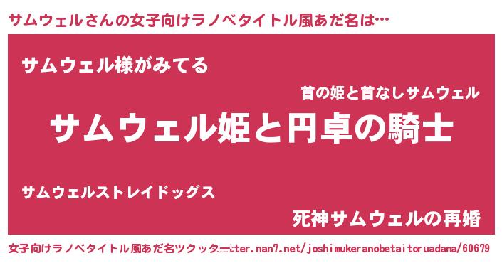 | 男性向けラノベタイトル風あだ名 | 『サムウェルアートオンライン』 |