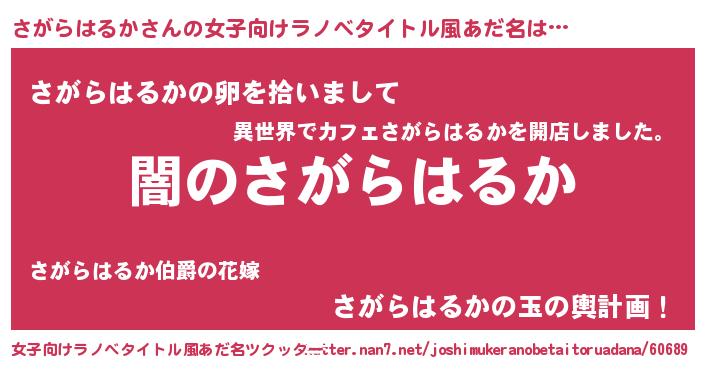 | 胡散臭い通販商品みたいなあだ名 | 『芸能人もオススメする高麗人参…その名も「さがらはるか」』 |
