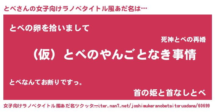 | 男性向けラノベタイトル風あだ名 | 『とべの憂鬱』『はたらくとべさま!』 |
