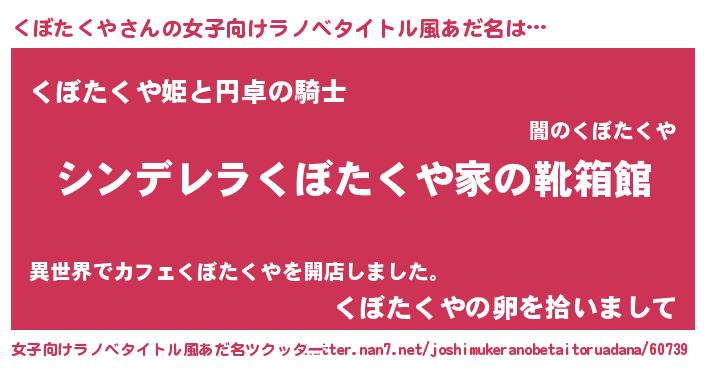 | 胡散臭い通販商品みたいなあだ名 | 『必ず成功するブレスレット…その名も「くぼたくや」』 |