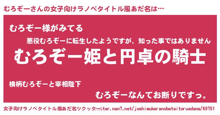 | 胡散臭い通販商品みたいなあだ名 | 『モテモテ間違いなし霊験あらたかなお札…その名も「むろぞー」』 |