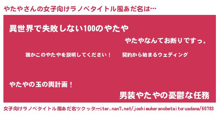 | 男性向けラノベタイトル風あだ名 | 『ヤタヤアートオンライン』 |