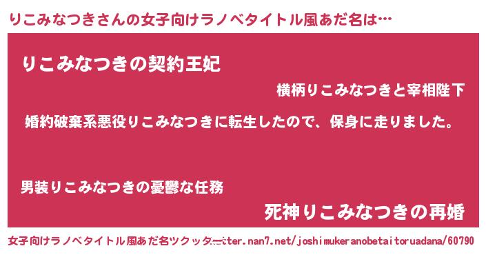 | 男性向けラノベタイトル風あだ名 | 『転生したらりこみなつきだった件』 |