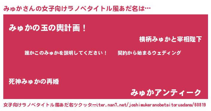 | 胡散臭い通販商品みたいなあだ名 | 『億万長者になれるブレスレット…その名も「みゅか」』 |