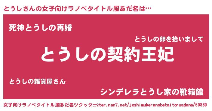 | ヘコむあだ名 | 『とうし(小並感)』『とうぷりん』 |