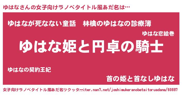 | 胡散臭い通販商品みたいなあだ名 | 『モテモテ間違いなし霊験あらたかなお札…その名も「ゆはな」』 |