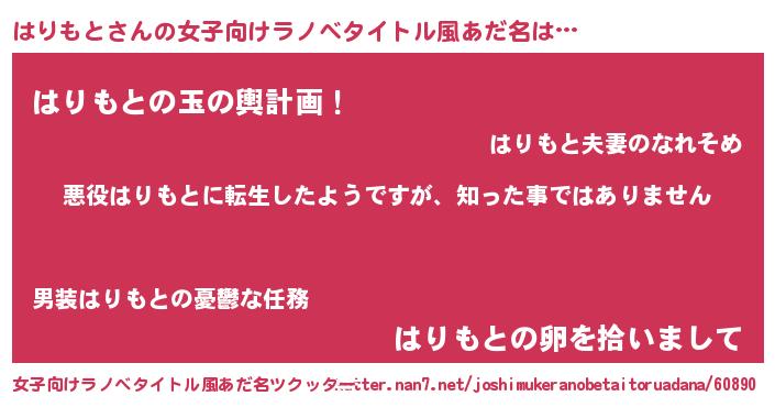 | 胡散臭い通販商品みたいなあだ名 | 『あなたにだけ特別に提供する100年もののヴィンテージワイン…その名も「はりもと」』 |