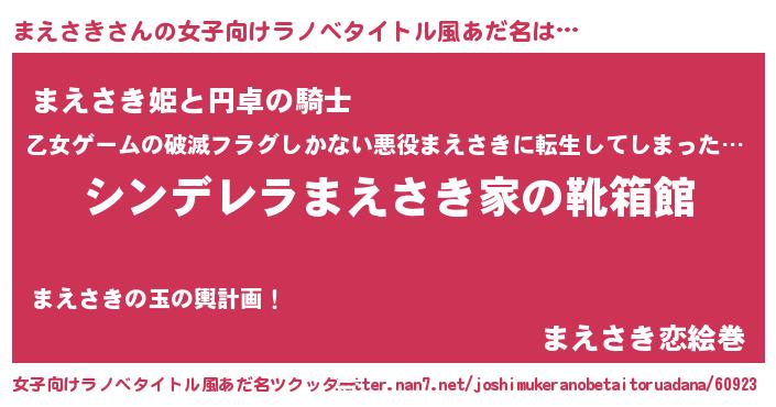 | 男性向けラノベタイトル風あだ名 | 『緋弾のマエサキ』『まえさきの憂鬱』 |