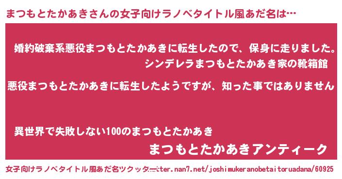 | 意味不明あだ名 | 『住所不定無職まつもとたかあき(5歳)』 |