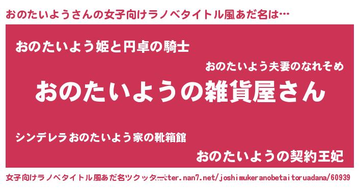 | 胡散臭い通販商品みたいなあだ名 | 『幸せが訪れる高級そうな壺…その名も「おのたいよう」』 |