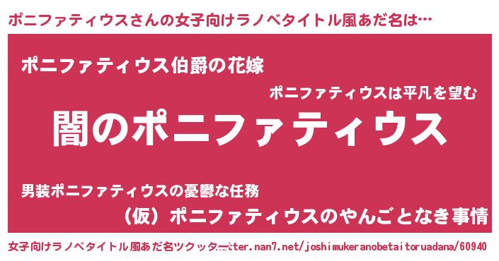 | ポケモン風あだ名 | 『ポニセウス』『ポニフダネ』 |