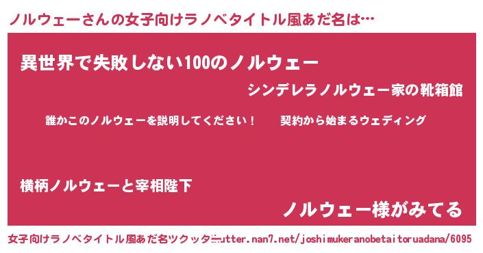 | 男性向けラノベタイトル風あだ名 | 『ノルウェーアートオンライン』 |
