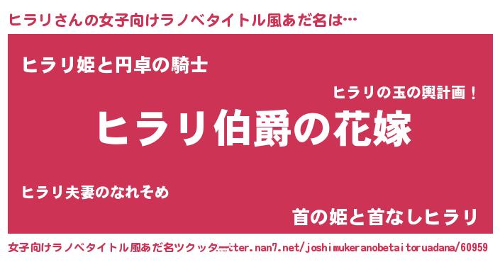 | ファンタジー風あだ名 | 『エターナルヒラリー』『ヒラフェル』 |