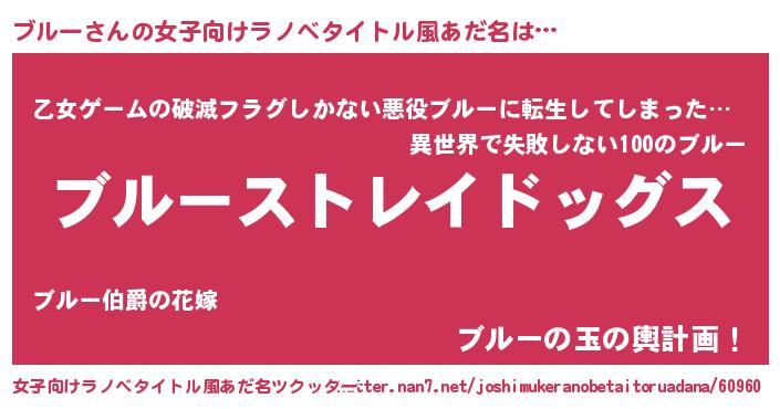 | ヘコむあだ名 | 『ブルー(爆)』『なまこ酢』『ブルを』 |