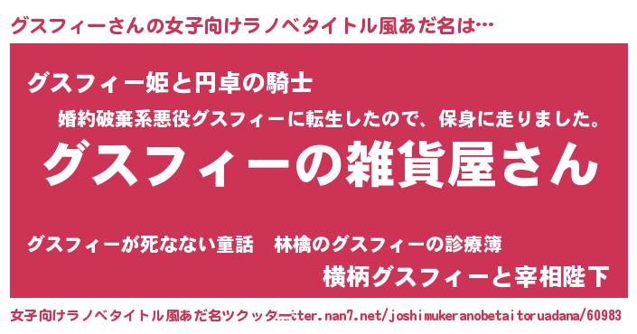 | 胡散臭い通販商品みたいなあだ名 | 『幸せが訪れる高級そうな壺…その名も「グスフィー」』 |