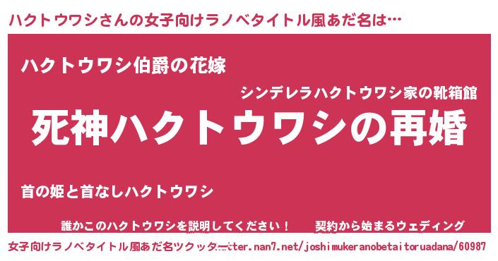 | 男性向けラノベタイトル風あだ名 | 『ノーゲーム・ノーハクトウワシ』 |