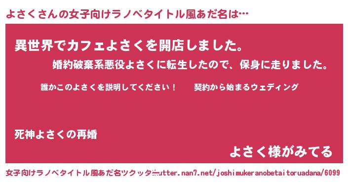 | 男性向けラノベタイトル風あだ名 | 『ヨサクアートオンライン』 |