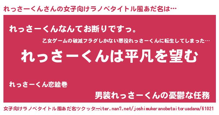 | 男性向けラノベタイトル風あだ名 | 『ダンジョンにれっさーくんを求めるのは間違っているだろうか』 |