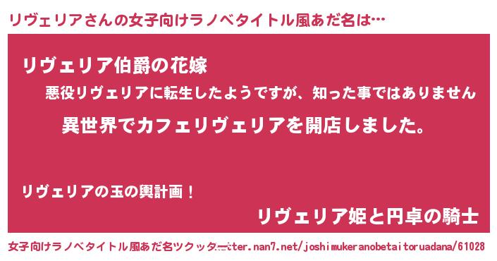 | 意味不明あだ名 | 『永久保存リヴェリア』 |