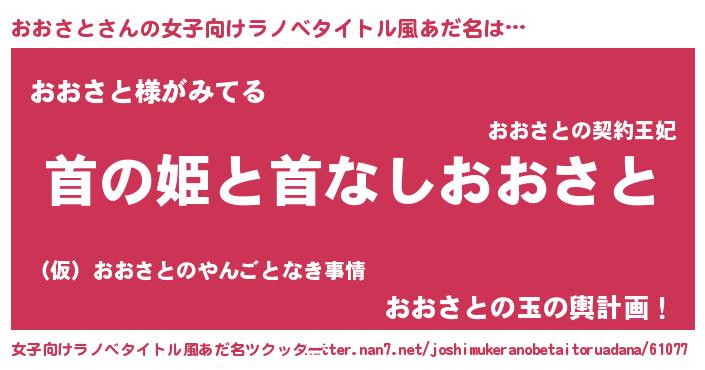 | 男性向けラノベタイトル風あだ名 | 『はたらくおおさとさま!』 |